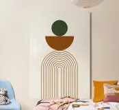 Una sorprendente composizione astratta con forme circolari e linee arcuate, che fonde simmetria e movimento organico. Questa opera d'arte minimalista ma audace evoca un senso di equilibrio e di design senza tempo, perfetto per gli interni moderni.