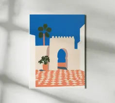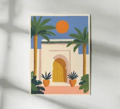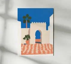 Calda, soleggiata e naturalmente moderna, questa stampa artistica ispirata al Marocco cattura il fascino dell'architettura nordafricana in uno stile raffinato e contemporaneo. Un morbido arco color sabbia si erge sotto un cielo blu intenso, incorniciato da pareti bianche e pulite e da una singola palma che ondeggia dolcemente sopra di esso. Un elemento di arredo elegante che celebra la bellezza e l'atmosfera del Marocco attraverso colori audaci e un design pulito.