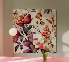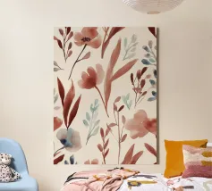 Questo delicato motivo floreale nei caldi rossi argilla e nei morbidi blu ardesia dona un tocco fresco e pittorico a qualsiasi spazio. Lo stile acquerello sciolto e le forme organiche evocano un'eleganza naturale, perfetta per gli interni boho moderni, le camere da letto o le zone living più tranquille.