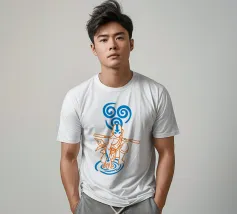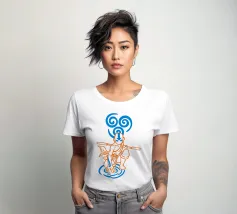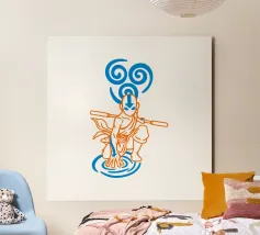 Un'illustrazione minimalista in linea artistica raffigurante un monaco guerriero che canalizza l'energia elementale, con simboli di aria fluida e movimenti dinamici. Quest'opera d'arte rappresenta l'equilibrio, la forza interiore e l'armonia tra corpo, mente ed elementi, ispirandosi alla filosofia orientale e all'estetica dell'animazione. Perfetta per gli appassionati dei mondi in stile Avatar, i geek che amano il simbolismo elementale e le persone che vibrano con calma potenza ed energia spirituale.