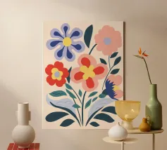 Questo affascinante disegno combina delicate tonalità pastello con accenti di colore audaci per creare una composizione floreale armoniosa. La combinazione di blu, rosa e giallo crea un motivo fresco e senza tempo, perfetto per tazze, cuscini, opere d'arte da parete e altro ancora. Ideale per chi vuole portare un'atmosfera calda e invitante nella propria casa con un'illustrazione floreale.