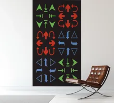 Questo motivo grafico a frecce presenta una composizione moderna di frecce ripetute in una varietà di colori che crea un senso di movimento ed energia. La tavolozza di colori limitata crea armonia e l'uso delle frecce simboleggia la direzione.