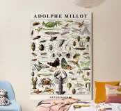 Un'affascinante illustrazione d'epoca di Adolphe Millot che mostra un'ampia varietà di artropodi, dagli insetti ai crostacei. Questa opera d'arte di storia naturale combina dettagli scientifici ed eleganza artistica, rendendola un pezzo ideale per gli amanti dell'entomologia, i collezionisti d'arte vintage e gli ambienti educativi. Una stampa di grande effetto che porta curiosità, conoscenza e stile su qualsiasi parete.