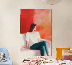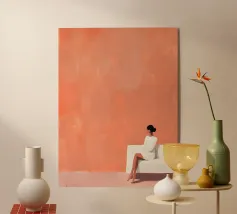 Un ritratto minimalista che cattura un momento di presenza e di calma interiore. Morbide pennellate, calde tonalità di terracotta e delicati contrasti incorniciano una figura a riposo, con gli occhi chiusi nell'immobilità. Quest'opera d'arte evoca la compostezza, la padronanza di sé e la bellezza del semplice essere. Un'opera raffinata ed emotivamente fondata, adatta a interni moderni, scandinavi o sereni.
