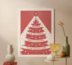 Questa stampa presenta un design audace e festoso, perfetto per trasmettere l'allegria delle feste. Ideale per chi vuole ravvivare l'arredamento delle feste con un messaggio unico e allegro.