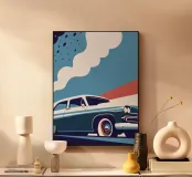 Godetevi la bellezza del passato con la nostra illustrazione dell'area Classic Cars! Questo disegno unico presenta splendidi dettagli di auto d'epoca, perfetti per gli amanti del settore automobilistico e per le decorazioni di ambienti a tema vintage.