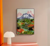 Sarah Gesek conferisce ai suoi paesaggi un'atmosfera da paese delle meraviglie ultraterreno con colori ricchi e porta mondi lontani nelle vostre case. L'artista di Seattle preferisce lavorare con colori acrilici su carta, ma anche con gouache, matite colorate, pastelli a cera e altro ancora. Ispirate dallo spettacolo naturale di rocce scoscese e giardini ondulati, notti stellate e cieli atmosferici, le opere di Sarah infondono un senso di vagabondaggio. Immergetevi, camminate e innamoratevi di nuovo del nostro mondo.