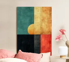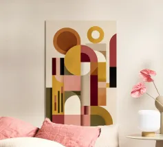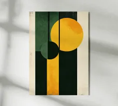 Quest'opera d'arte incarna l'essenza della geometria Bauhaus, intrecciando linee verticali e orizzontali in un gioco ritmico di equilibrio e contrasto. Le tonalità autunnali della terra - rosso ruggine, verde oliva, ocra e beige caldo - creano profondità e armonia attraverso la griglia strutturata. Minimale ma potente, cattura il dialogo senza tempo tra forma e colore, evocando sia il calore stagionale che la chiarezza modernista.