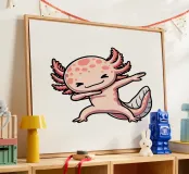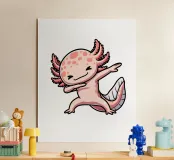 A cute axolotl character is depicted doing a dab pose