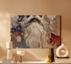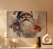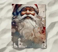 La nostra stampa fine art presenta un incantevole acquerello di un volto di Babbo Natale in festa. Questa rappresentazione artistica cattura lo spirito magico della stagione delle feste in modo unico e creativo.