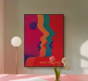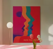 Drei Silhouetten, ein einziger, aufregender Moment! Dieses Stück ist 70er-Psychedelic-Pop pur – Milton Glaser trifft Tadanori Yokoo auf Acid-Trip. Magenta, Orange und Türkis schieben sich wie pulsierende Farbwellen übereinander und lassen drei Gesichter fast verschmelzen: links die Sehnsucht, mittig die Hingabe, rechts die pure Erwartung. Drei Münder nur Millimeter voneinander entfernt, drei Nasen, die sich berühren könnten – ein Kuss, der gleichzeitig drei mal passiert. Minimal, grafisch, hypnotisch. Dieses Poster macht aus jedem Raum einen Club der Sinne. Dazu Dein persönlicher Text!