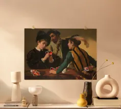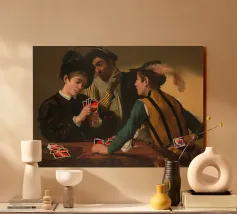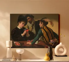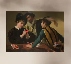 "In questa opera, una delle grandi opere di Caravaggio riceve una svolta inaspettata grazie all'aggiornamento del gioco di carte presente nella scena, sostituendolo con il popolare gioco Uno. Il contrasto tra la drammaticità del chiaroscuro barocco e la semplicità colorata delle carte Uno crea un risultato ironico e divertente".