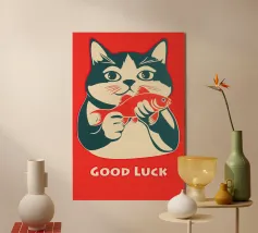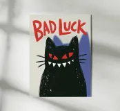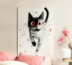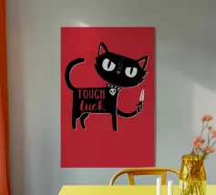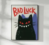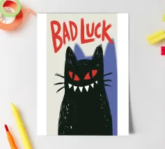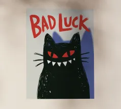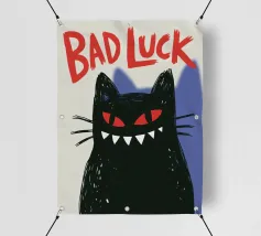 Un gatto nero con gli occhi rossi e un ghigno dentato: questo disegno gioca con le superstizioni con umorismo e audacia. La scritta "Bad Luck" accentua il suo lato ribelle e stravagante. Ideale per gli amanti delle grafiche incisive, del simbolismo mistico, di Halloween o del secondo grado. Perfetto per un arredamento originale dal sapore dark-pop, che unisce la sfortuna a un devastante stile felino.