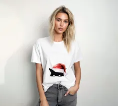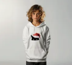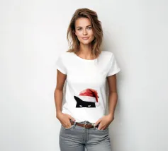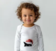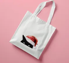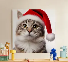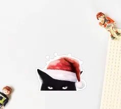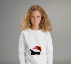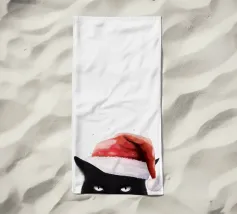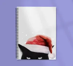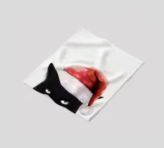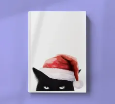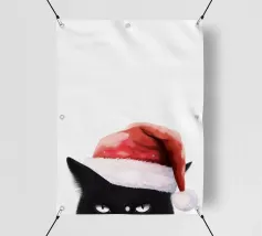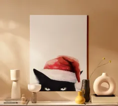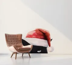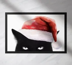 Illustrazione del gatto nero con cappello da Babbo Natale