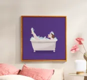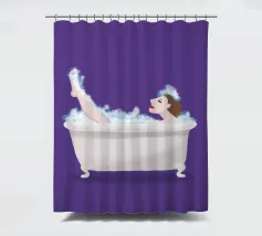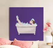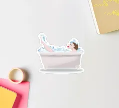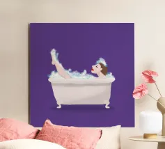 Illustrazione di una donna nella vasca da bagno. Il motivo è realizzato su sfondo trasparente. In questo modo puoi scegliere il tuo colore di sfondo preferito. Se non ti piace il viola, sostituiscilo con un altro colore.