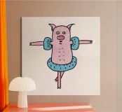 Illustrazione disegnata a mano di un maialino che si è dotato di ausili per il nuoto per divertirsi. Il motivo è su sfondo trasparente. È possibile scegliere sfondi colorati a piacere. È inoltre possibile aggiungere testo o personalizzare il testo esistente. Divertitevi con questo motivo.