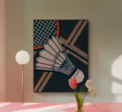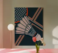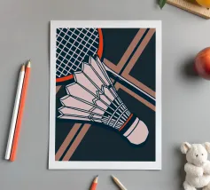 Celebrate il vostro amore per il badminton con questa elegante illustrazione vintage!
