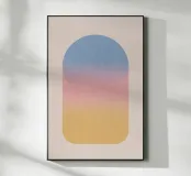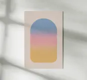 Questo poster minimalista mostra una sfumatura di colore che sfuma dolcemente sotto forma di arco stilizzato. Nei colori blu, rosa e ocra dorati, il motivo irradia calore, calma ed eleganza moderna. La forma fluida ricorda finestre, cancelli o orizzonti: ideale per ambienti tranquilli, spazi abitativi moderni o interni scandinavi con un tocco di colore.