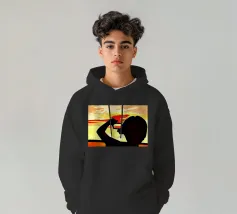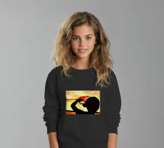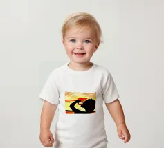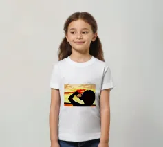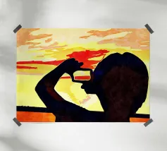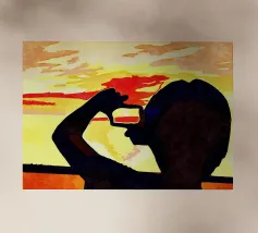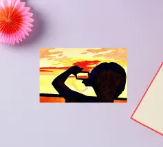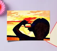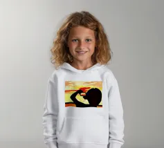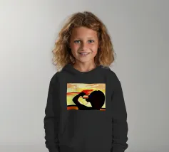 Silhouette di un bambino al tramonto che incornicia il sole tra le dita.