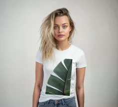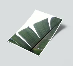 La foglia di banano è ampia e di un verde vibrante, si estende come una vela naturale, la sua superficie liscia cattura la luce mentre le sue delicate venature corrono con grazia dal gambo alla punta.