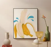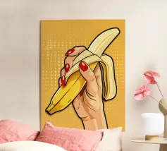 Ravviva la tua cucina o il tuo progetto creativo con questa illustrazione stilizzata e moderna di una banana sbucciata!
