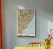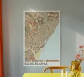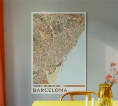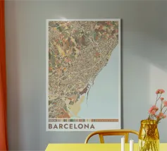 La città di Barcellona in una splendida mappa a colori. La città di Barcellona con la mappa dettagliata della città divisa in diversi colori si adatta come murale a casa o in ufficio.