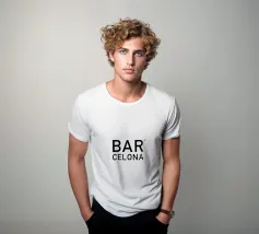 Adoro andare a Barcellona in Spagna. Amo viaggiare in tutto il mondo. Adoro visitare le città, le montagne e il deserto. Tipografia in nero e bianco (trasparente). È possibile cambiare il colore dello sfondo. Poster tipografico minimalista di un viaggiatore.