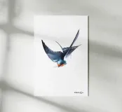 Illustrazione ad acquerello dipinta a mano di rondine barbagianni in volo.