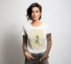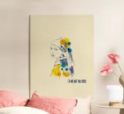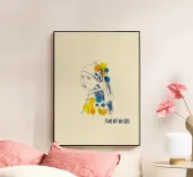 Una rivisitazione moderna dell'intramontabile capolavoro di Vermeer, questo poster di grande impatto cattura l'essenza della Ragazza con l'orecchino di perla attraverso audaci linee ed elementi di colore astratti. L'espressione delicata e la posa iconica sono conservate, mentre i cerchi vibranti aggiungono una dimensione grafica fresca. Perfetto per gli amanti dell'arte, degli interni moderni e per coloro che apprezzano la bellezza classica con un tocco di novità.