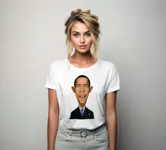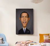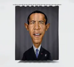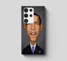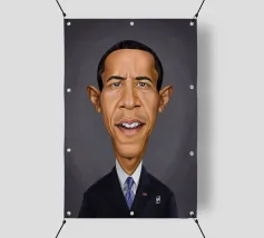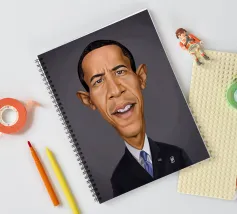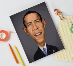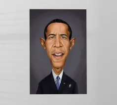 A humorous caricature illustration of the well-known American attorney and politician, who served as the 44th president of the United States; Barack Obama. One of a series of caricatures achieved for the Celebrity Sunday series, where a famous person is rendered within a day. The idea is to show them as if in a passport photo to have consistency.