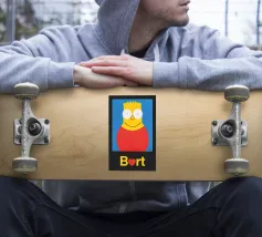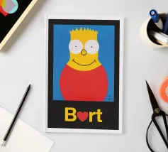 Identità: Bart Simpson 2. Questa colorata stampa artistica di un dipinto acrilico di ZELA ART porta la Pop Art moderna e minimalista nel tuo salotto o nel tuo ufficio. Il ritratto è ideale come decorazione da parete elegante che attira l'attenzione. I ricchi contrasti di giallo, blu e rosso conferiscono all'illustrazione un effetto astratto e potente. Quest'opera d'arte raffigura una delle 24 persone o identità ispiratrici della serie "Persönlichkeitsanteile" (Aspetti della personalità). È perfetta per i collezionisti alla ricerca di motivi diversi. Senza personalizzazione.