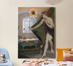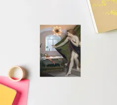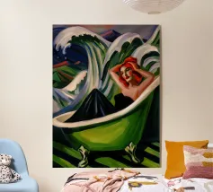 "Bath Meeting" è un'opera che sfida le convenzioni con un abile collage che fonde diversi elementi e figure tratti da dipinti iconici per dare vita a una situazione completamente nuova. In questa originale creazione, vari personaggi della storia dell'arte si riuniscono in una vasca da bagno, creando un contesto inaspettato e umoristico. Ogni elemento aggiunge uno strato di ironia e freschezza a quest'opera, assicurando un sorriso sul volto dello spettatore".