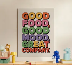 Poster tipografico allegro e motivante in stile retrò: lettere colorate in blu, giallo, verde, arancione e rosso combinate con piccole illustrazioni come un fiore, un cuore e un arcobaleno. Perfetto per le stanze dei bambini, li ispira ad andare avanti e a crescere.