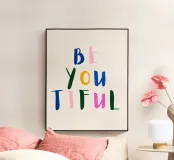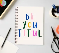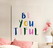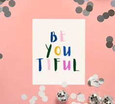 Scritta colorata su sfondo chiaro: Be you tiful.