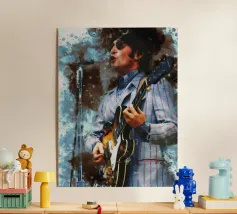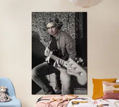 "Beethoven Solo" è un esilarante mash-up che eleva la figura del leggendario compositore a un nuovo livello, ritraendolo come un chitarrista dilettante che si esercita a casa. Questo pezzo spiritoso fonde il genio musicale di Beethoven con la semplicità di un musicista dilettante, creando un contrasto divertente e ironico. Ideale per gli amanti della musica classica che amano un tocco di umorismo nell'arredamento. Un'opera d'arte in stile collage che farà ridere chiunque la veda!".