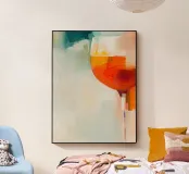 An expressive, painterly composition centered on a glass of Aperol Spritz, captured in warm orange hues and soft, layered brushstrokes. The abstract background and loose forms evoke the feeling of an unhurried moment — light, conversation, and the quiet anticipation before the first sip. Contemporary and atmospheric, this artwork brings a relaxed Mediterranean elegance to modern interiors.