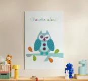 Un'illustrazione affascinante e giocosa di un bizzarro gufo blu che ammicca dal suo posatoio, con divertenti dettagli di bottoni e un design colorato ispirato al patchwork. La frase "Chouette alors!" aggiunge un allegro tocco francese, rendendo quest'opera d'arte perfetta per chi ama i disegni stravaganti e spensierati. Ideale per stampe, magliette, tazze e altro ancora, questo simpatico gufo porta allegria e carattere in ogni spazio!