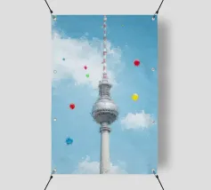 Torre della televisione di Berlino con palloncini in look pittorico