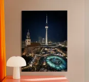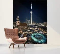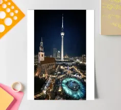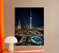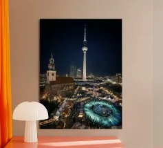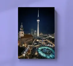 Berlino, città, notte, torre della televisione, mercato di Natale, grande città, urbano, architettura, fotografia urbana, fotografia notturna, luci, skyline, capitale, metropoli, atmosfera, torre della televisione