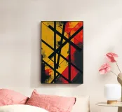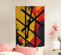 Questo poster cattura la cruda essenza dello spirito artistico di Berlino attraverso un audace design astratto. Le vibranti tonalità di giallo e rosso si scontrano con le spesse linee nere, evocando i contrasti dinamici e la tensione creativa della città. Gli angoli acuti e i motivi stratificati suggeriscono la continua reinvenzione di Berlino come centro di innovazione ed espressione. Un pezzo straordinario per gli appassionati di arte moderna e del paesaggio culturale unico di Berlino.
