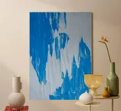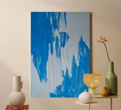 Una moderna opera d'arte strutturata caratterizzata da due splendide tonalità di blu. La struttura a strati e la sottile profondità creano un'atmosfera rilassante e contemporanea. Perfetta per case minimaliste, arredi costieri e interni moderni. Questa opera d'arte astratta blu aggiunge eleganza, serenità e interesse visivo a qualsiasi soggiorno, corridoio o camera da letto.