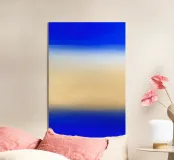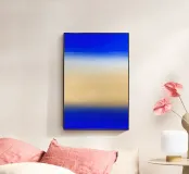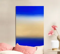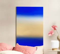 Quest'opera d'arte vive nella transizione. Un lento movimento dalla profondità all'apertura, dall'intensità alla calma. Strati di blu e toni caldi della sabbia si incontrano senza conflitti, creando un senso di equilibrio, chiarezza e tranquilla espansione. È un'opera destinata a radicare uno spazio lasciando spazio per respirare.