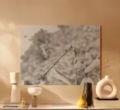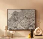 Le Domaine des Libellules in bianco e nero Puro silenzio e grazia, dove le ali diventano pennellate di piume e l'acqua uno specchio d'ombra pacifica. Un luogo fuori dal tempo, dove ogni volo sussurra l'eternità.