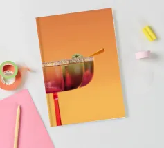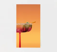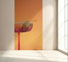Il bicchiere da cocktail è elegante e sottile, con uno stelo lungo che permette di tenerlo in mano con grazia. La sua coppa è ampia nella parte superiore, perfetta per mettere in mostra bevande e guarnizioni colorate. All'interno, il cocktail brilla di tonalità vivaci, spesso decorate con una fetta di frutta o un piccolo ombrello. Il bicchiere cattura magnificamente la luce, facendo apparire il drink rinfrescante e invitante, pronto per essere gustato in una serata calda.