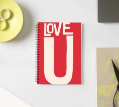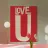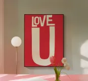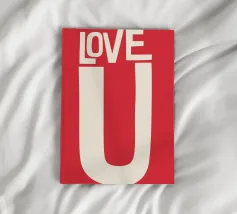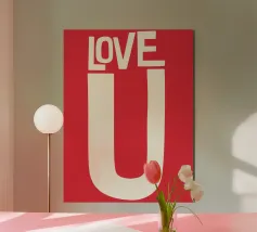 Arte tipografica in grassetto con la scritta "LOVE U" in rosso e crema.