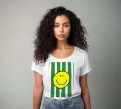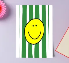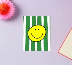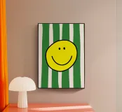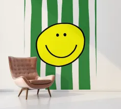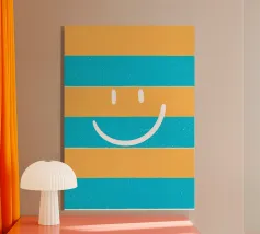 Un grande sorriso su strisce morbide e moderne. Le parole semplici e allegre e i toni caldi danno un tocco di energia giocosa e di fascino accogliente, perfetto per ravvivare le camere da letto, gli spazi creativi o qualsiasi altro luogo che accolga un po' di gioia.