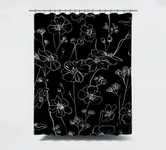 Modello di disegno lineare di fiori selvatici in bianco e nero