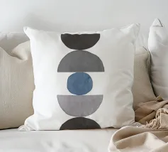 Aggiungete un tocco di fascino minimalista al vostro spazio con questa vibrante stampa d'arte astratta moderna di metà secolo, caratterizzata da un'ipnotica miscela di forme geometriche e fluide di acquerello su uno sfondo neutro morbido e cremoso. Con la sua calda atmosfera scandinavo-giapponese, non è solo arte: è un'atmosfera.