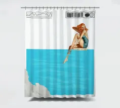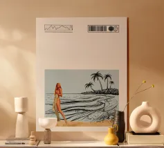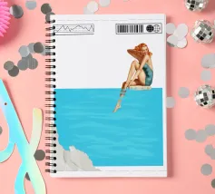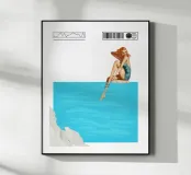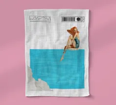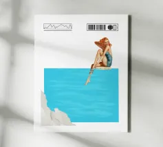 La settima opera della serie "Timeless Femininity" emana una leggerezza estiva e un'eleganza sognante. Una donna in costume da bagno color turchese è seduta sul bordo di una piscina, con le gambe che si immergono dolcemente nell'acqua cristallina. La sua posa è rilassata, un sorriso si posa sulle sue labbra mentre assapora il momento di calma. Il blu brillante dell'acqua occupa la maggior parte della composizione e trasmette una sensazione di spazio e serenità. Un bordo bianco delicatamente strutturato nella parte inferiore dell'immagine completa la scena.