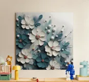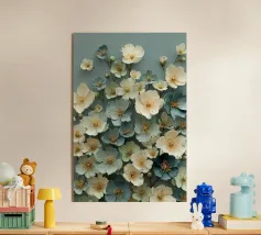 Il colore applicato crea una texture vivace, quasi tangibile, che infonde vita ai fiori. Nonostante le pennellate decise, il dipinto irradia una struttura calma che pone lo spettatore in un dialogo tranquillo con la natura. I colori blu e bianco si armonizzano perfettamente e trasmettono una sensazione di pace e innocenza. Quest'opera d'arte è un'ode alla bellezza tranquilla e travolgente della natura, toccante nella sua semplicità e profondità.